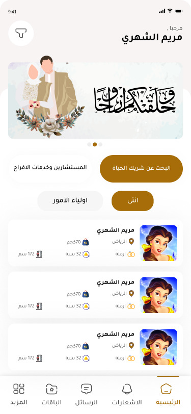 تطبيق وسيط يهدف إلى سهولة اختيار الشريك الآخر للزواج من خلال مراحل منظمة وآمنة تحترم القيم والتقاليد الإسلامية. سجل الآن واختر الباقة المناسبة لك.